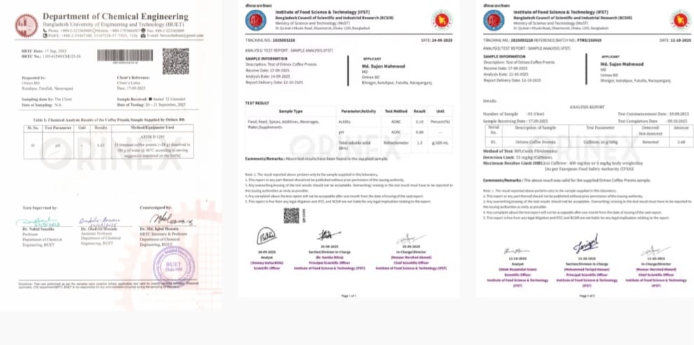 🧪 BCSIR Approval আমাদের কফি পরীক্ষিত এবং বৈজ্ঞানিকভাবে মান যাচাই করা। বাংলাদেশ বিজ্ঞান ও শিল্প গবেষণা পরিষদ (বিসিএসআইআর) দ্বারা গুণগত মান ও নিরাপত্তা নিশ্চিত।